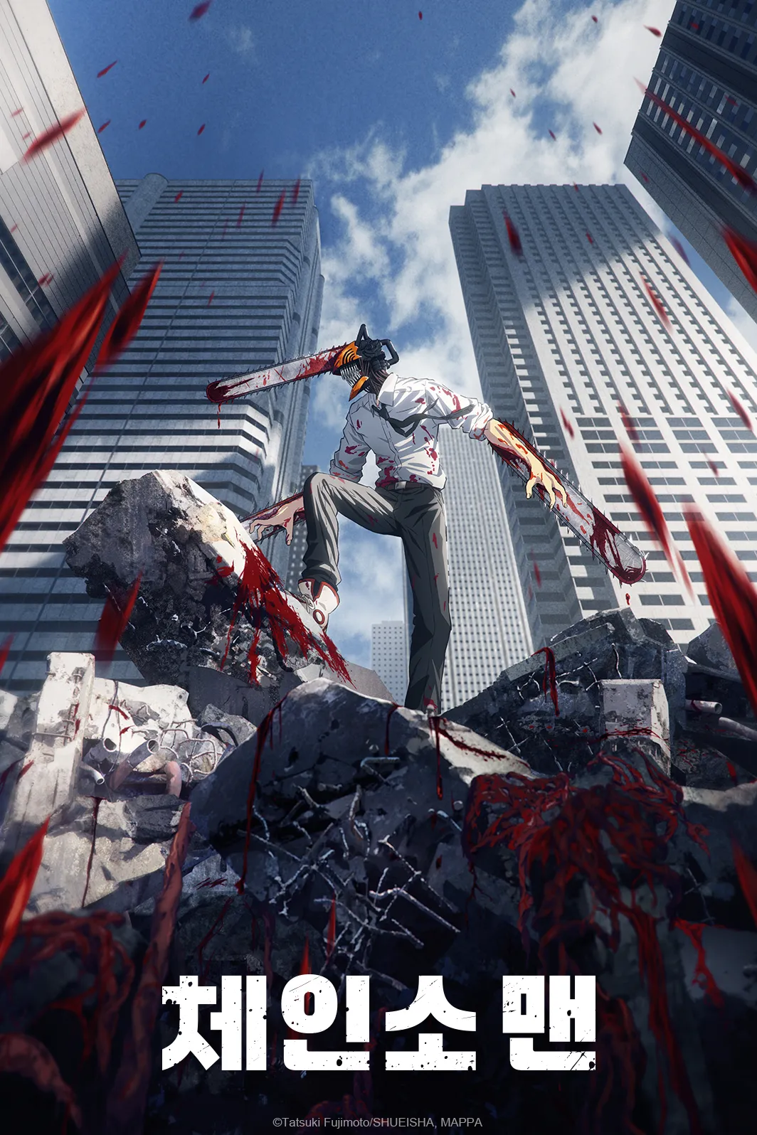 가난과 빚에 내던져진 소년 덴지가 악마 포치타와의 계약으로 데빌-인간 하이브리드가 되며 이야기는 시작된다. 공안 데빌 헌터 조직에 들어간 덴지는 파워·아키·마키마와 얽히며 “괴물과 사람”의 경계를 넘나든다. TV 애니메이션은 12화 구성으로 만화 초반 핵심을 압축해 입문자도 세계관을 부담 없이 따라가게 만든다. 제작은 MAPPA, 시리즈 구성 세코 히로시, 디자인·액션 라인과 더불어 우시오 켄스케의 음악이 폭발-잔향-정적의 리듬을 조직한다. 오프닝 ‘KICK BACK’은 체인 톱의 ‘킥백’ 개념을 제목에 끌어와 작품 정서를 리듬으로 각인한다.